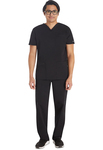 Men's fit V-Neck top has rib-knit back side panels for comfort and stretch. There is a dyed-to-match rib-knit inset at the center front neck for style and additional stretch. Four pockets provide plenty of storage: one chest patch pocket with pen/instrument slot, two patch pockets (one with zipper for secure storage), and one additional patch pocket with bartacked pen/instrument slot. Center back length: 28"