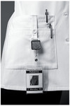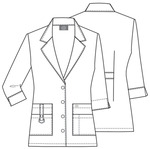 A Contemporary fit button front lab coat features a notched lapel and 3/4 length sleeves with side vents that can be folded up as cuffs. Also featured are four patch pockets (one with utility strap and D-ring), back darts and a center back belt for shaping. Center back length: 30". Imported.